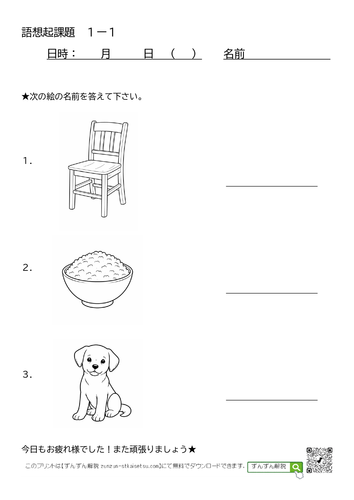 この課題は、絵をみて、絵の名前を文字を書いて(書字で)解答してもらう課題です。